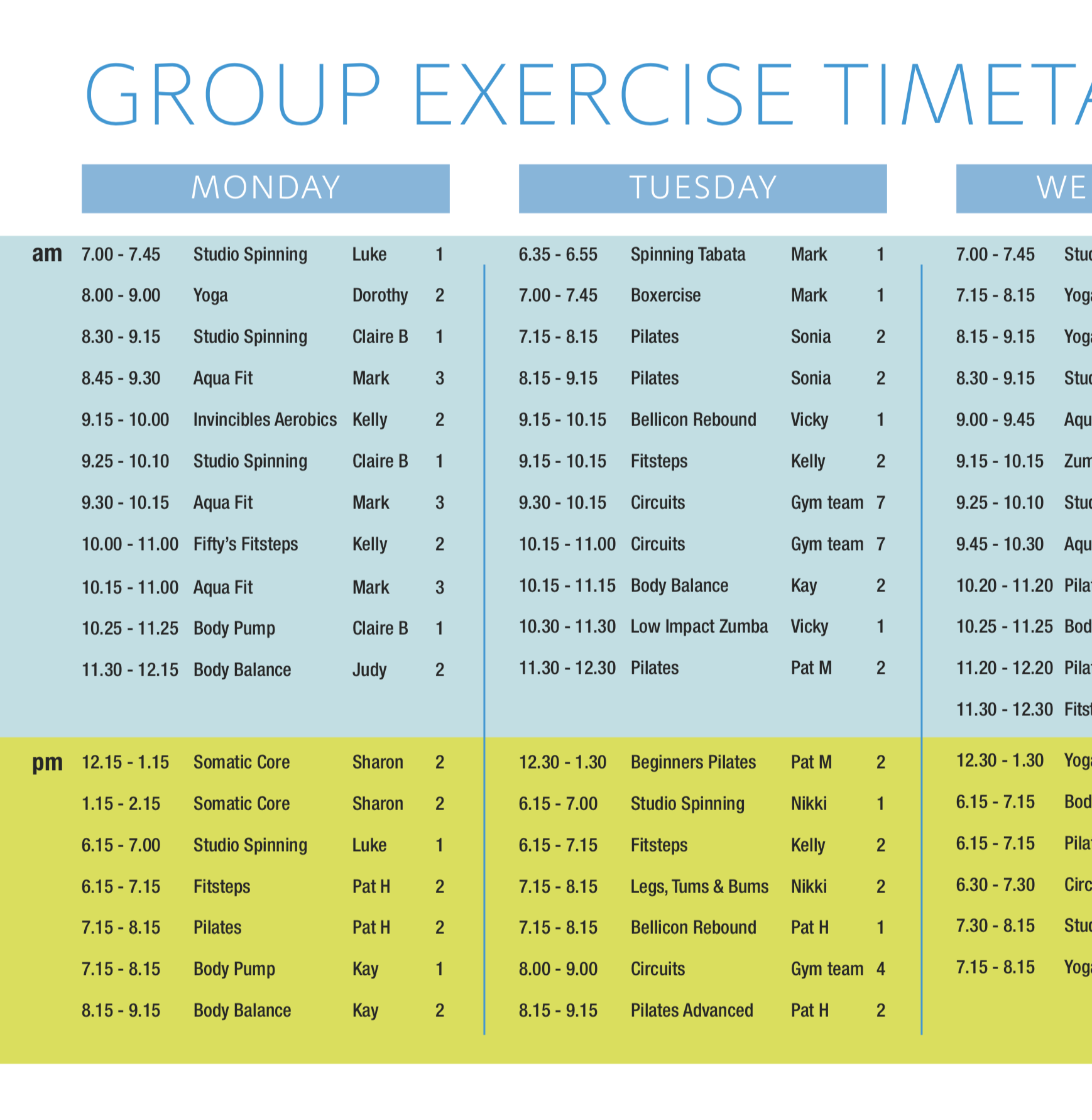 Group Exercise Timetable